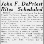 We know the family moved to Mesa between 1 April 1935 and 1936. I should say families. Irene married Roy Murray on 23 Nov 1933 in Chandler, OK. Both the Murrays and the Depriests headed west together. Roy got a job in Mesa as a mechanic and ended up eventually leasing his own garage for a while.