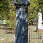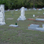 Monday was finally cemetery day. It’s about 35 minutes from the campsite to Rubottom, but, I decided to head to the Bourland Cemetery (about 5 miles east of Courtney) first, and then do a quick tour of the North Texas Hill Country before Rubottom. It was our first visit to the Bourland Cemetery, because, unfortunately, I didn’t know about it on our 1987 visit. This is the location of the grave of my great-great grandfather, William M. Hogue, who was buried there in 1886. Not many people live near this cemetery, but some folks are taking the time to mow and maintain the fence, at least. Unfortunately, there are many broken monuments here, and William’s turned out to be one of them (see the picture below).